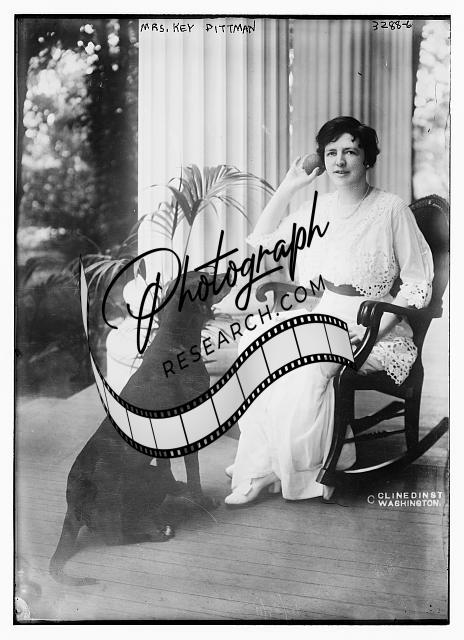Mrs. Key Pittman,Kay Pittmas,seated in rocking chair,throwing ball for her dog