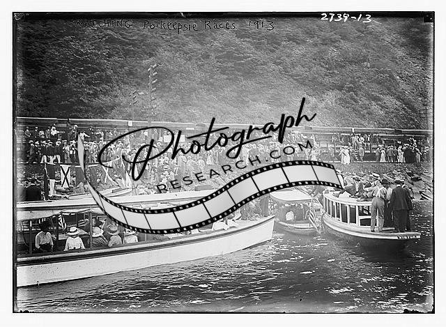 Watching Poughkeepsie races,New York,N.Y.,1913,Rowing Races,boats,spectators