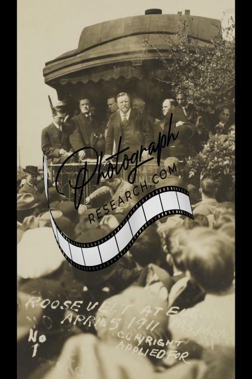 Theodore Roosevelt,Standing on back of Train,Eugene,Oregon,OR,April 17,c1911