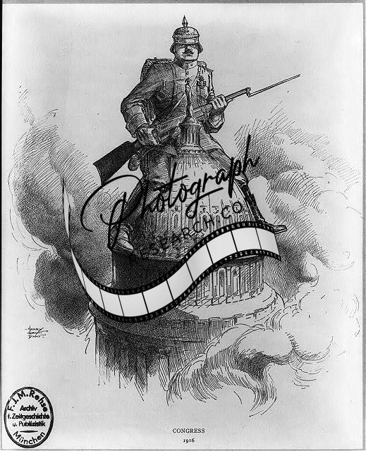 Congress,1916,Political Cartoon,German Soldier,Dome,US