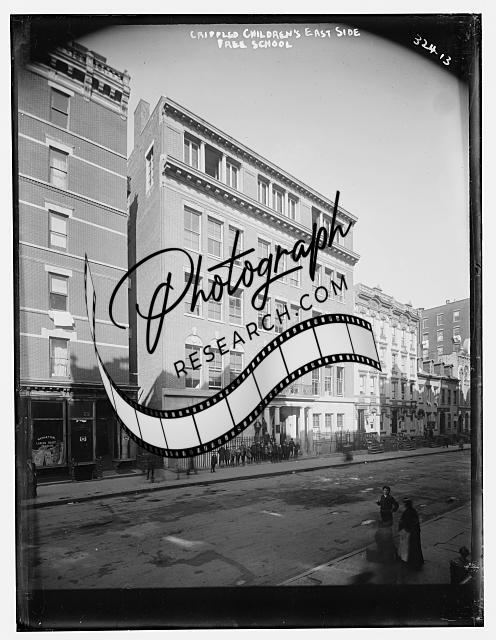 Crippled Children's East Side Free School,exterior view,pedestrians