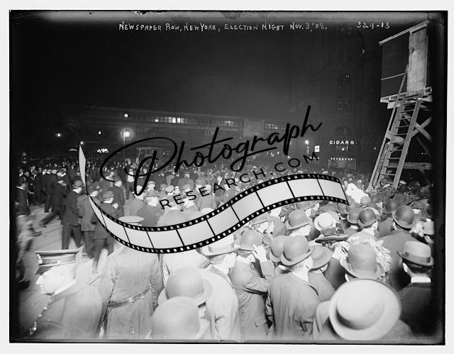Newspaper Row,Election night,crowd of people,1908,New York,NY