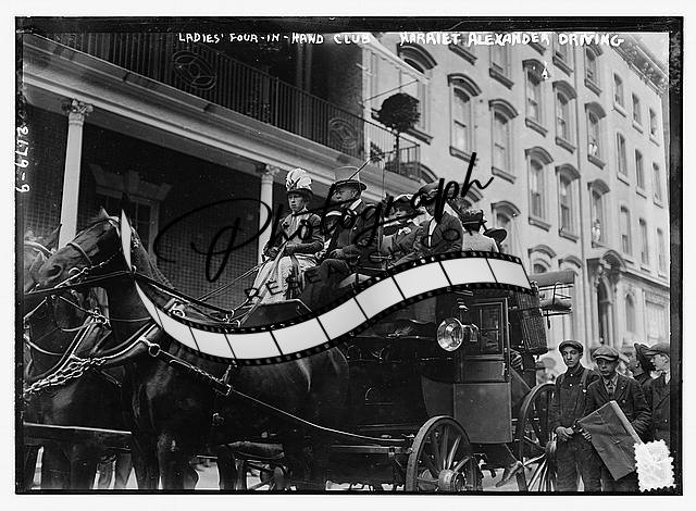 Ladies' 4-in-hand-club,horse drawn carriage,automobile,trees,1910-1915,women