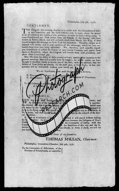 Photo of Letter,July 4,1776,Lancaster,Pennsylvania,defense of New Jersey