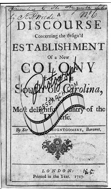 Robert Mountgomery,Establishment of New Colony,SC,1717