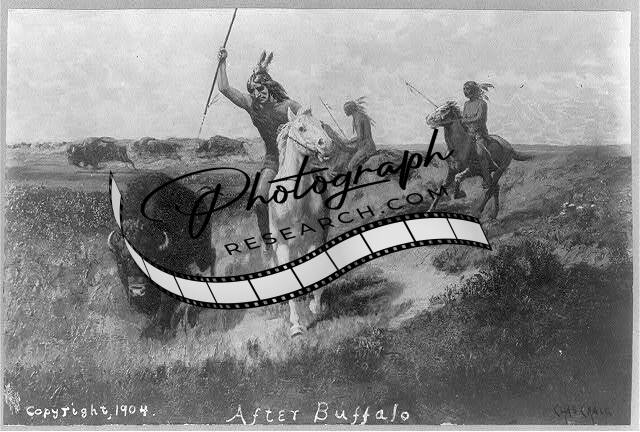 After Buffalo,Indians with spears,horseback chasing buffalo,c1904,Charles Craig