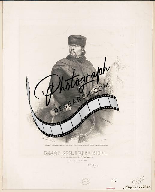 Major Gen. Franz Sigel, on the battle field of Pea Ridge Ar: 6th 7th & 8th March 1862