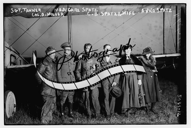Sergeant Tanner,Major Carl Spatz,Colonel A. Miller,C.B. Spatz,wife,Anna,military