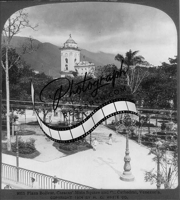 Plaza Bolivar,Main Square,Cathedral,Caracas,Venezuela,c1904,Streetlamp,Trees