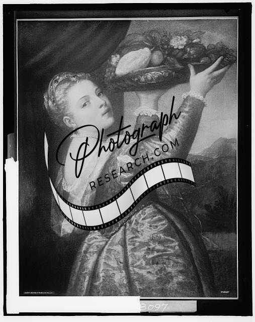 Woman holding fruit basket,paintings,clothing,Detroit Publishing Company,c1900