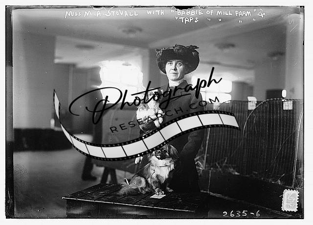 Miss M.A. Stovall with pets,woman with two dogs,1910-1915,Babbie of Mill Farm