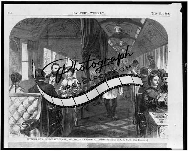 Palace hotel car,Pacific Railroad,A. Waud 1869