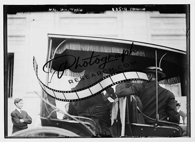 Mrs. William Thaw,veiled,in carriage with gentleman,New York,NY,July 1909