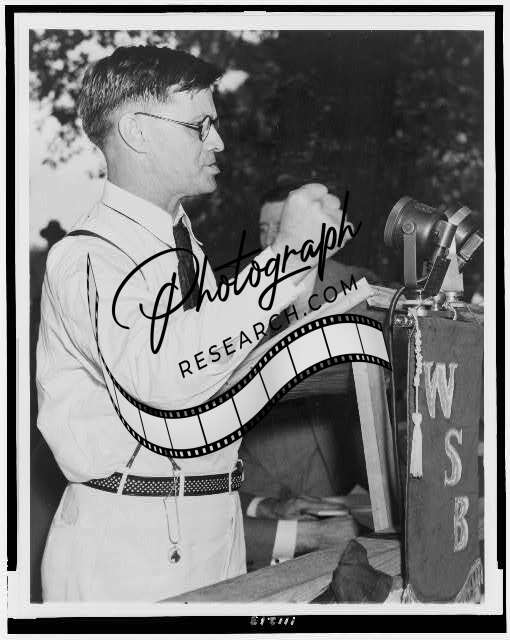 Summary: Gov. Eugene Talmadge, half-length portrait, seated, delivering attack on President Roosevelt's New Deal, during radio broadcast.