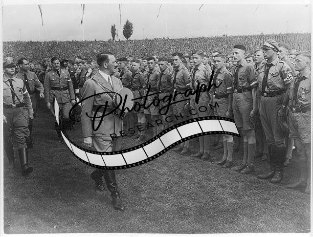 Adolf Hitler 1889-1945; inspecting Hitler Youth; Hess and Schirach walking behind