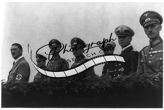 Adolf Hitler, 1889-1945; with his military chiefs, Goering, von Blomberg, von Frisch, and Raeder - Wehrmact Day, 1935