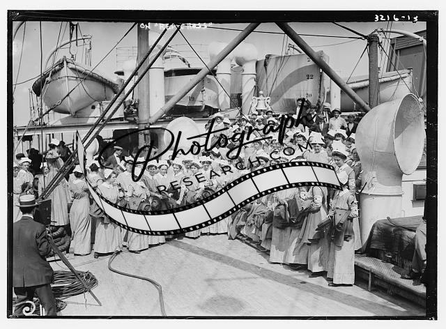On RED CROSS,nurses aboard ship,on deck,Bain News Service