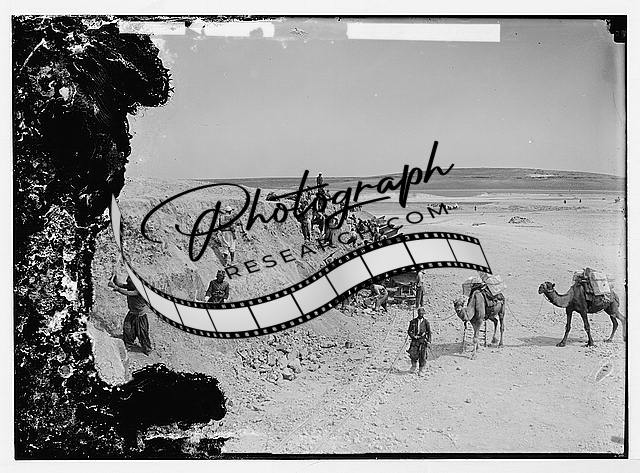 German Baghdad Railway,Digging into hillside,hauling soil by camels,handcar