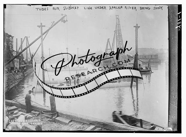 Tubes for subway line under Harlem River,being sunk,1910-1915
