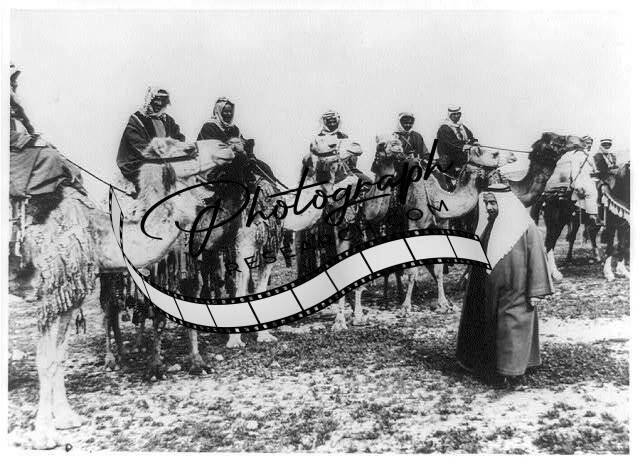 Emir Abdullah of Transjordan inspecting Arab Camel Patrol,1942,Men on Camels