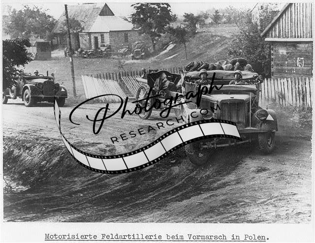 Poland - German motorized field artillery advancing,military,soldiers,1939