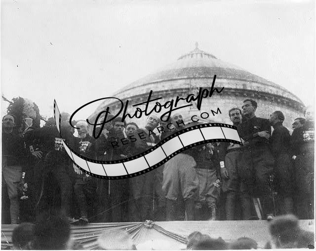 Benito Mussolini,Bemedalled Facists standing on outdoor platform,Rome,1922