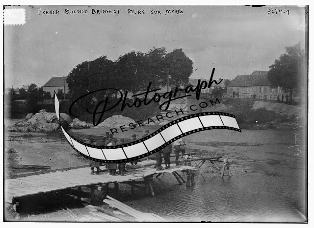 French Building Bridge at Tours Sur Marne,France,Bridge ruined,damaged,men