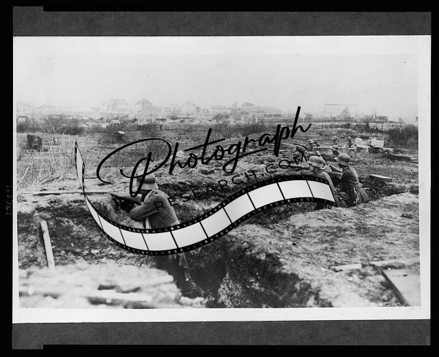 German soldiers in a trench,town,WWI,1914-1918,guns