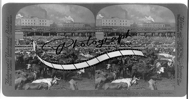 Photo of Stereograph,Unloading Beef Cattle,Union Stock Yards,Chicago,Illinois,IL