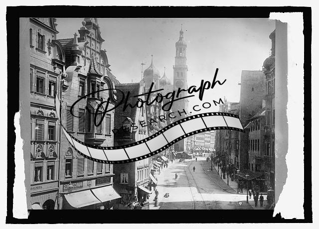 Germany,Augsburg,Kaiolene St. with Perlach Tower,Europe,1909-1920,National Photo