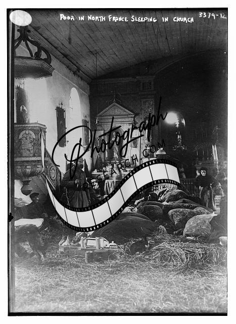 Poor in North France Sleeping in Church,people laying in hay,soldiers,Bain News