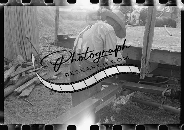 Farmer repairing wagon,central Ohio,OH,Farm Security Administration,FSA,1938