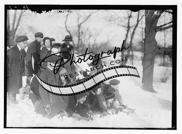 Coasting - Central Park,sledding,1910-1915,winter,children