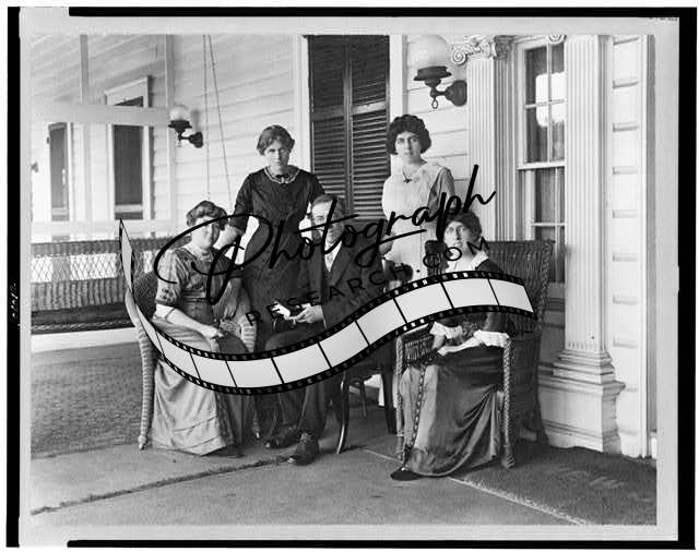 Woodrow Wilson,on porch, Ellen Louise Wilson,daughters