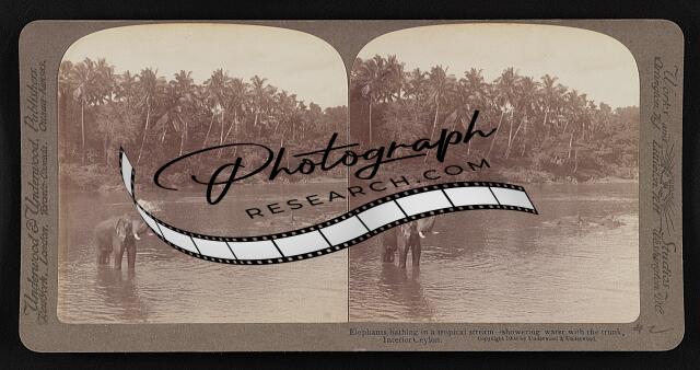 Elephants bathing in a tropical stream--showing water with the trunk, interior C