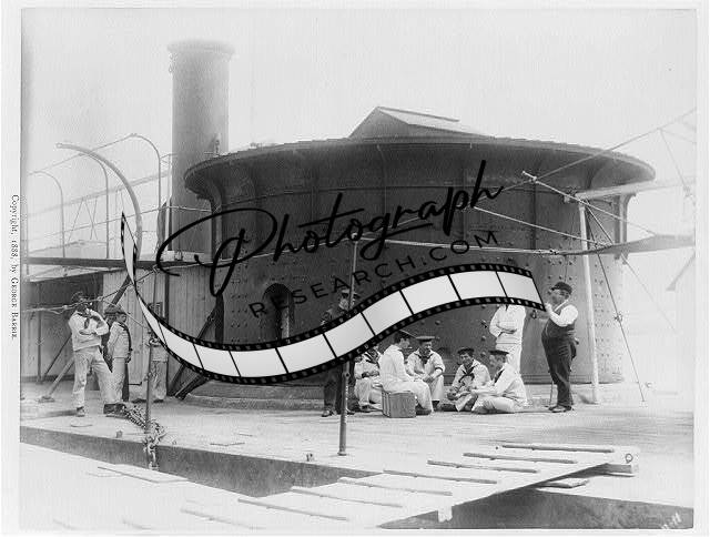 Monitor Matank,League Island Navy Yard,c1888,Sailors playing cards on deck,ship