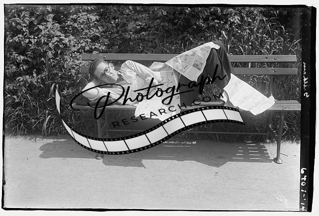 Gillham laying on Park Bench reading newspaper,Bain News Service