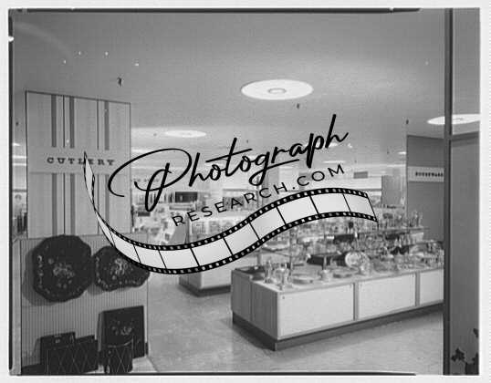 Title: Gimbel Brothers, business in Cross County Center, Yonkers, New York. Gourmet shop under stairs