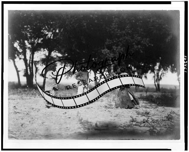 Child life,cotton woods,Navajo Indians,children,playing,clothing,E Curtis,c1905