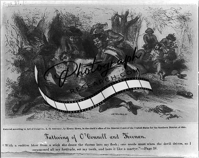 Tattooing of O'Connell,Keenan,native woman painfully tattooing 2 men,c1855