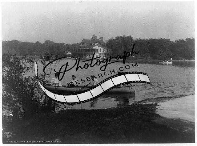 Boating,Garfield Park,lakes,ponds,canoes,water travel,Chicago,Illinois,IL,c1907