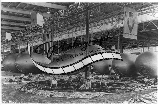 Barrage balloon seams being cemented,inspected by women war workers,c1942