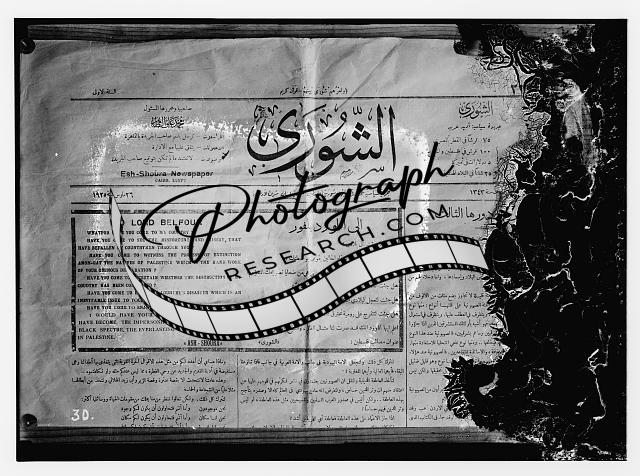 Copy of front page of Arab newspaper on Lord Balfour's arrival,1925,Middle East
