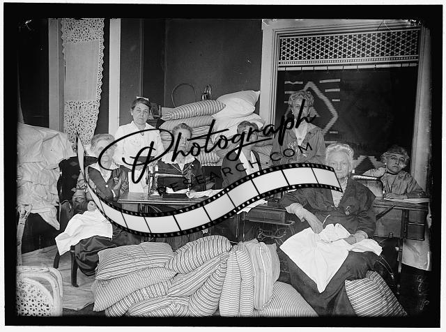 Legion of Loyal Women,sewing on bedding for hospitals,1918,Harris & Ewing