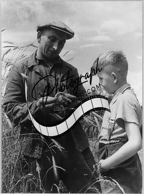 Man,Boy,Examining Wheat in Field,City Children Visit the Country,Germany,c1935