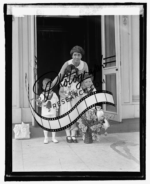Children present Mrs. Coolidge with flowers,5/1/25,Grace Goodhue,First Lady