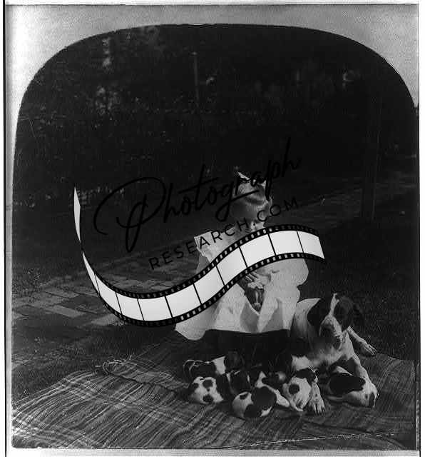 Little Helen,Puppies,Dogs,c1899,Little Girl,Children at play,animals,pets