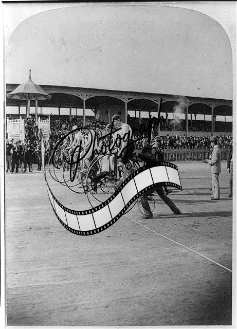L.A.W. Bicycle Race,The Start,c1890,Men Racing on Track,Spectators