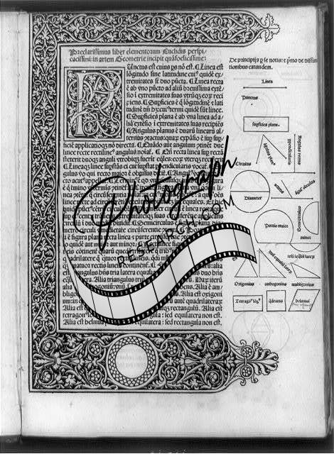Title page,Elementa geometrie,border,initial P,geometric diagrams,Euclides,1482
