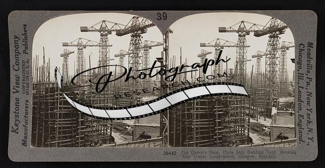 The Queen's Deck, Clyde Ship Building Yard, showing ship under construction, Gla